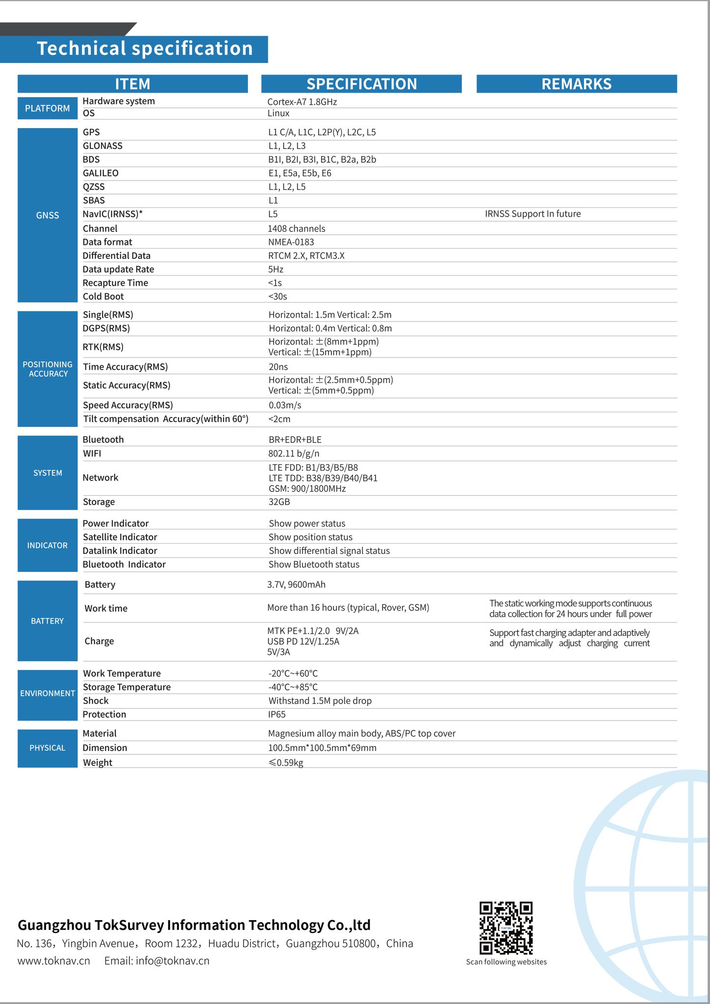 Thông số kỹ thuật máy RTK Toknav T5Lite: